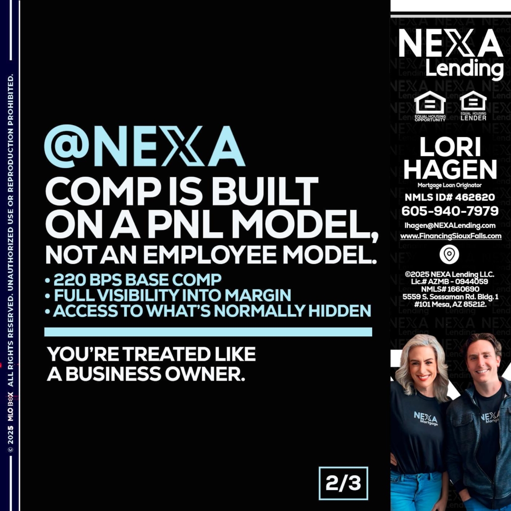2 OF 3 - Lori Hagen & Tony Bartholomaus -Mortgage BrokersHi, my name is Lori Hagen & Tony Bartholomaus. I’m a Loan Officer with NEXA Lending LLC., offering personalized mortgage solutions, fast customized quotes, great rates and service with integrity.