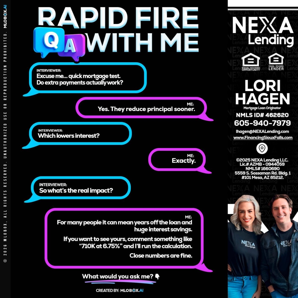 Hi, my name is Lori Hagen & Tony Bartholomaus. I’m a Loan Officer with NEXA Lending LLC., offering personalized mortgage solutions, fast customized quotes, great rates and service with integrity.